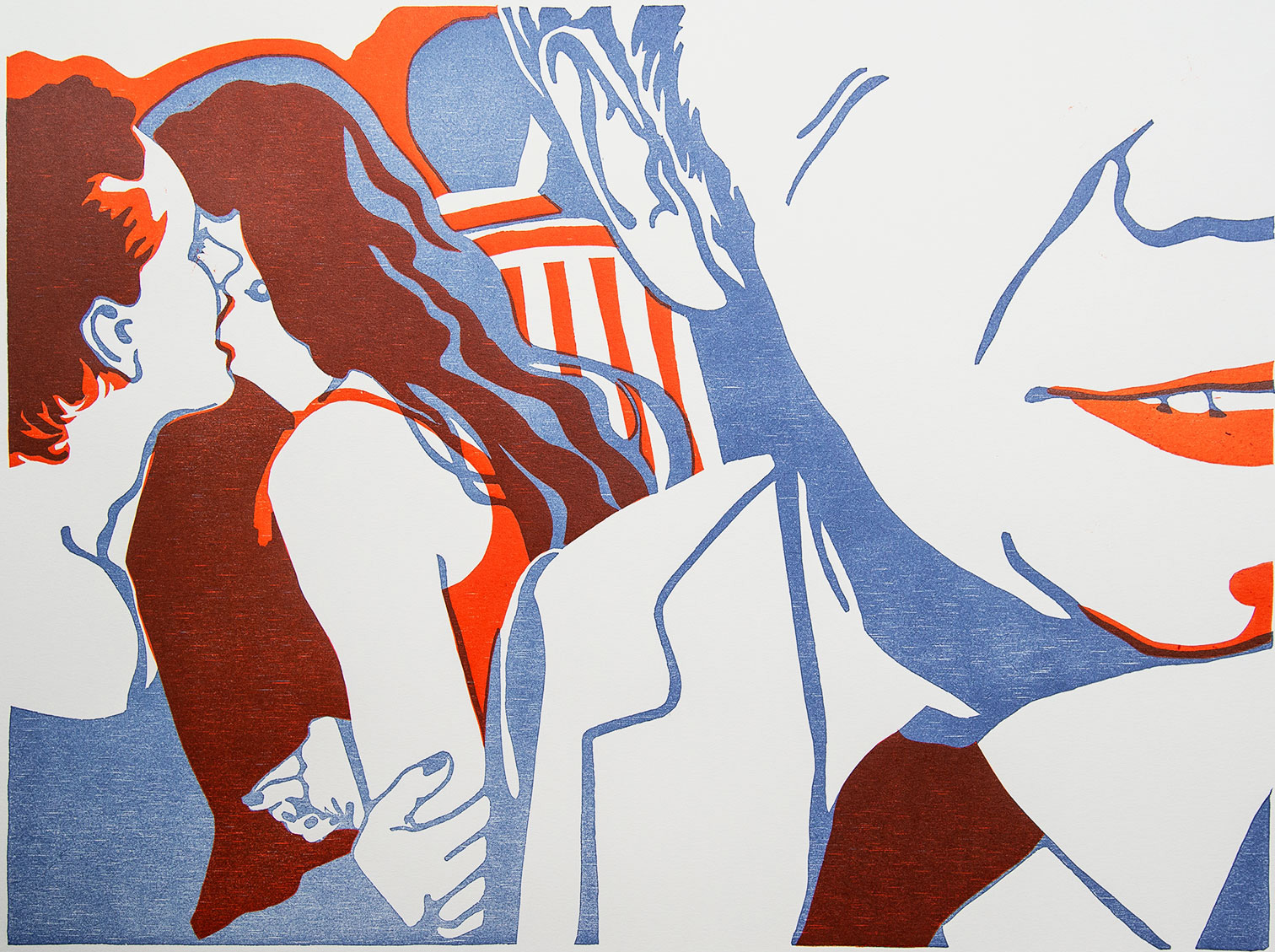 Party 2, Zweifarbiger Holzschnitt 80 x 60 cm, gedruckt auf 250 gr/qm Römerturm, Auflage: 10 Drucke + 2 e.a.