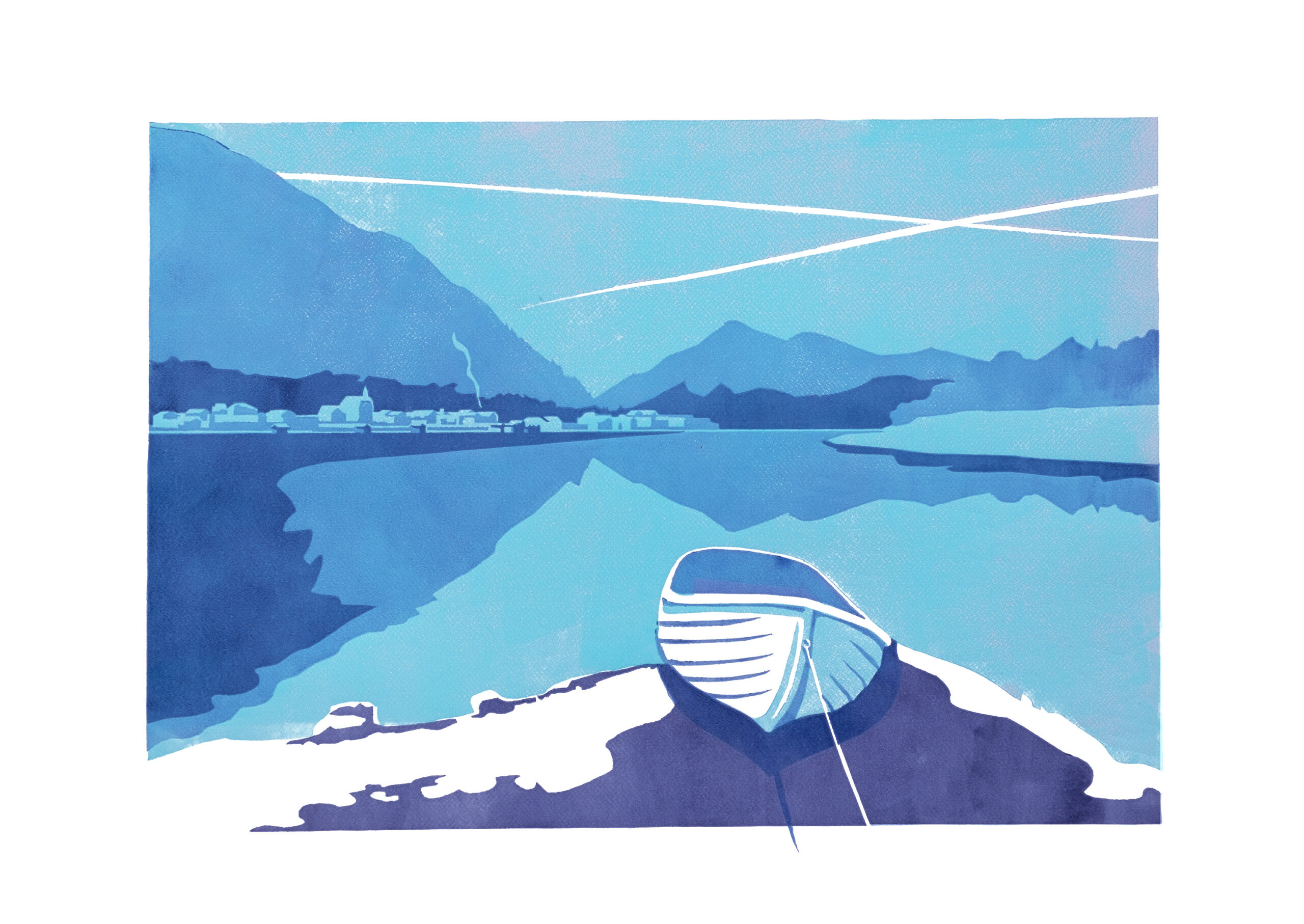 Staffelsee, Zweifarbiger Holzschnitt 90 x 70 cm, gedruckt auf 250 gr/qm Fedrigoni, Auflage: 8 Drucke